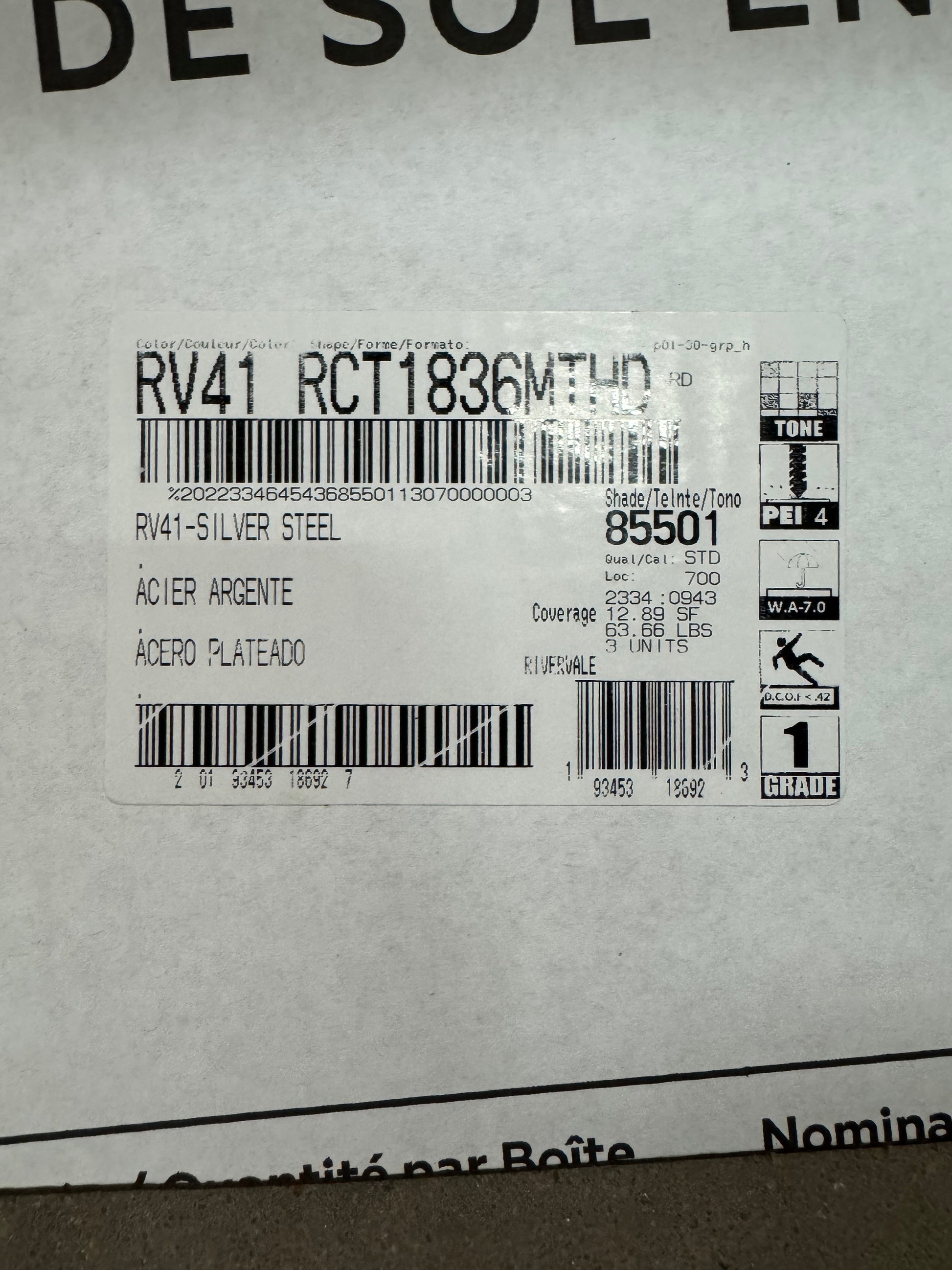RIVERVALE SILVER STEEL 18x36 RV41 99¢ 12.89SQFT