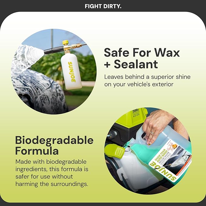 [BEST RESULTS]: For best results, use with a pressure washer foam cannon attachment (Sun Joe SPX-FC34)