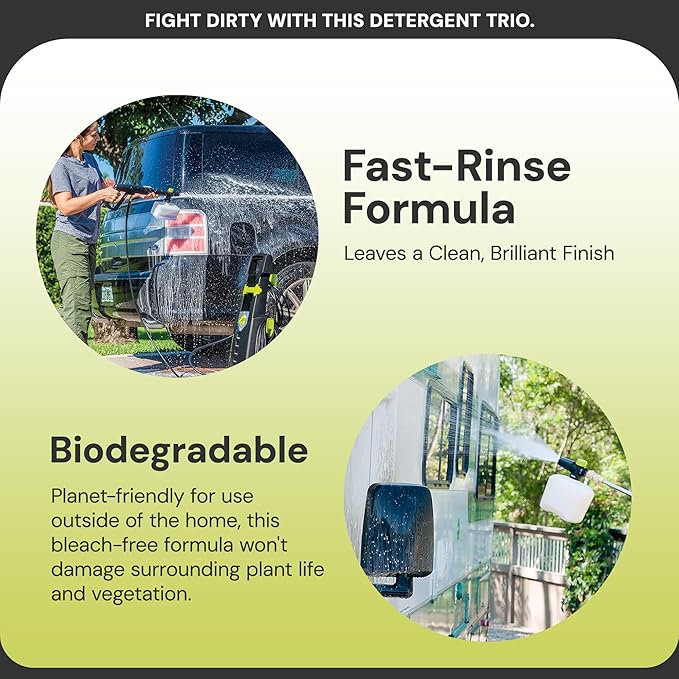 [INCLUDES]: 3x 1 quart bottles of concentrated pressure washer detergent