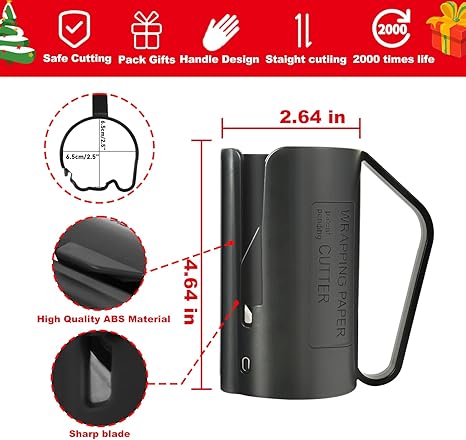 - The wrapping paper cutter is made of durable ABS and is suitable for most gift roll sizes. Its uniquely designed handle makes the cutting line straighter. The drum design can also serve as a roll of wrapping paper, which is convenient for each use.
